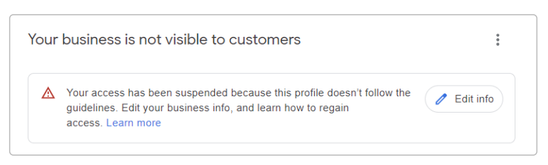 Your business listing becomes unverified but may still appear to the public in search results. In a soft suspension, when you log in to your Google Business Profile dashboard you’ll see a message that your access is suspended and you can’t make edits, even though customers might still see the listing online.